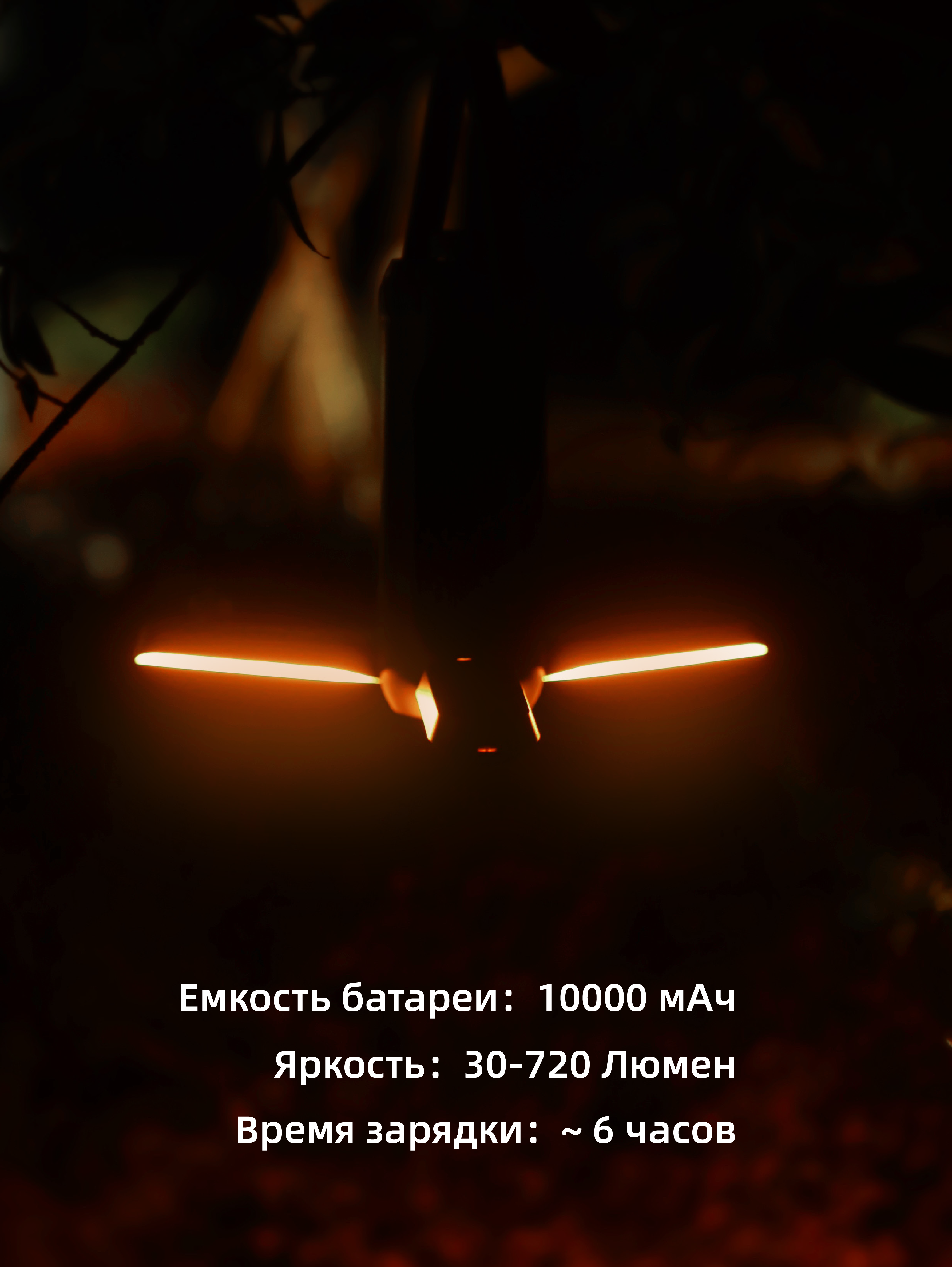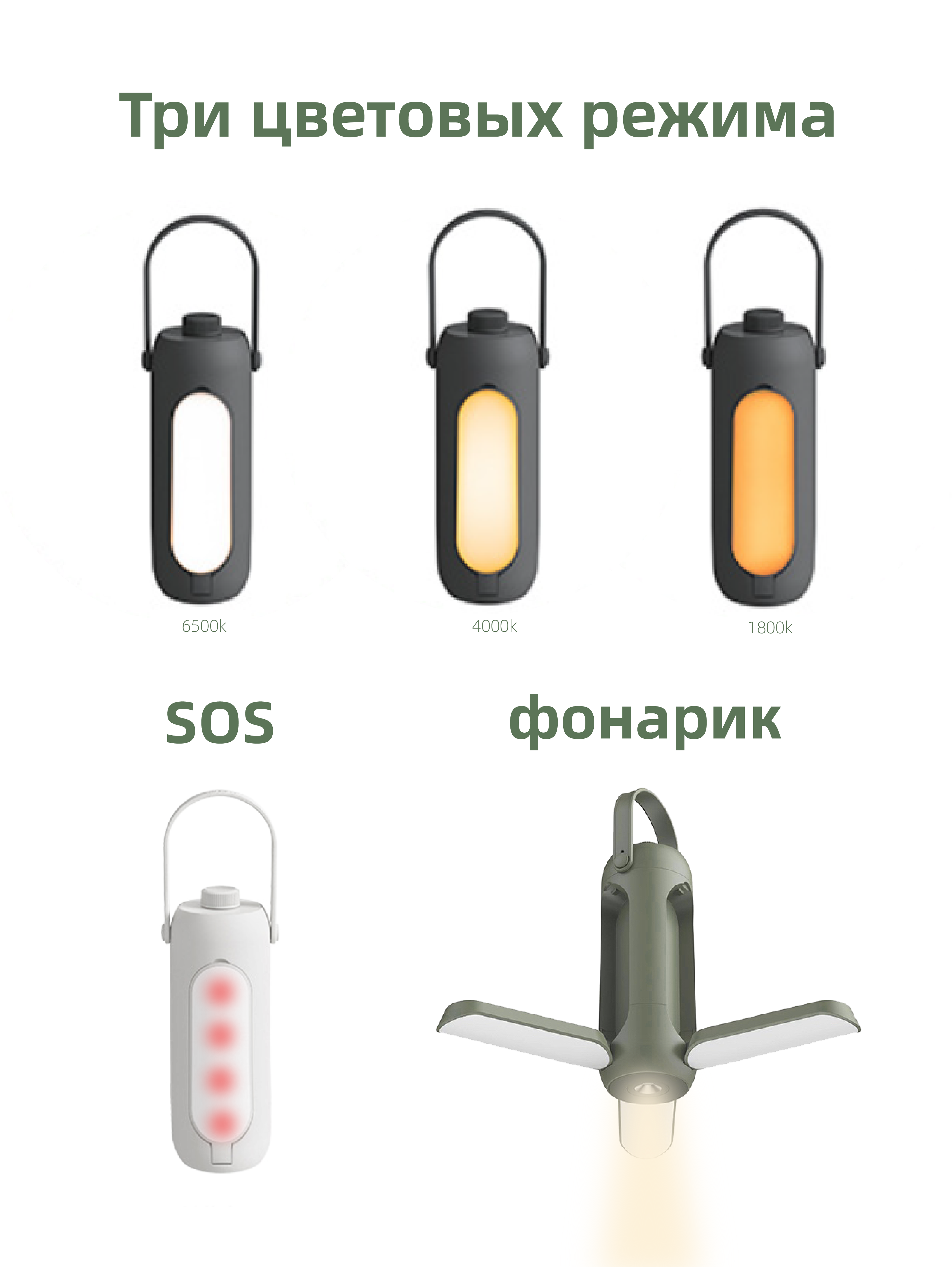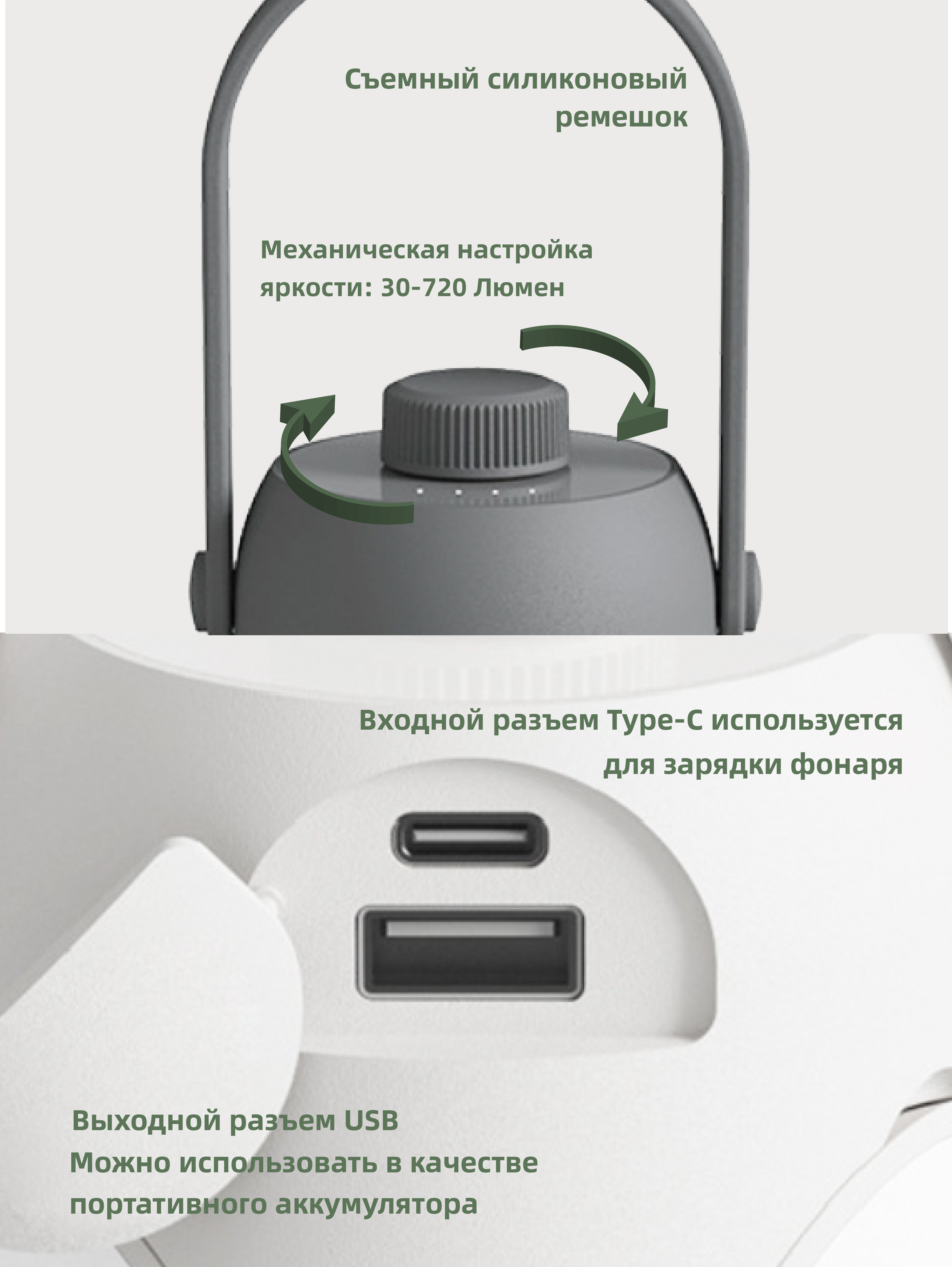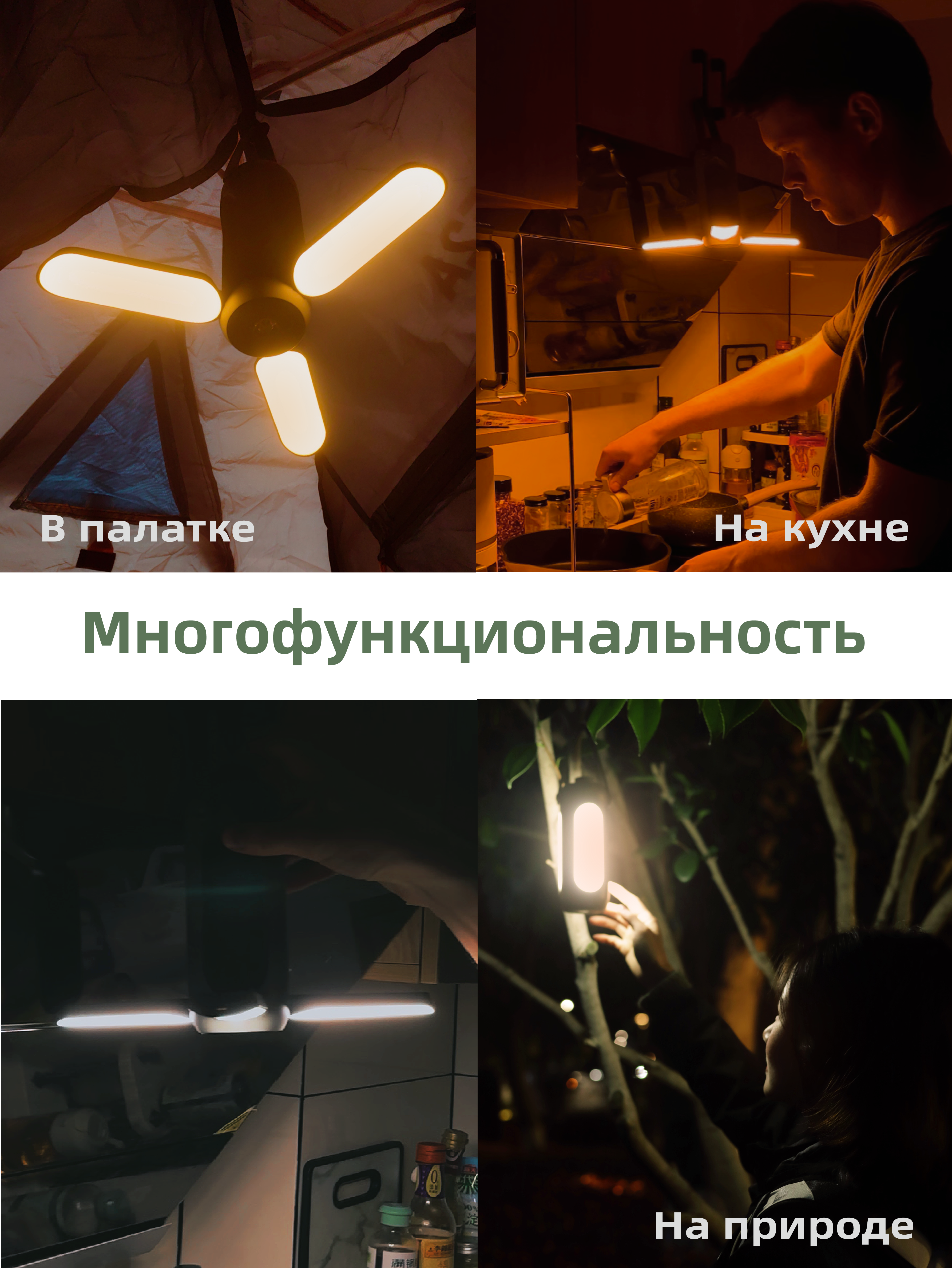 Аккумуляторный кемпинговый фонарь 3 в 1 — мощный, складной, с функцией powerbank Идеальный спутник для кемпинга, туризма, рыбалки, дачи, охоты и любых выездов на природу. Универсальный складной фонарь с мягким освещением на 360°, функцией зарядки устройств и регулировкой яркости. 🔧 Преимущества: 3 в 1: фонарь, светильник, пауэрбанк 10000 mAh — до 50 часов автономной работы 360° освещения — мягкий, рассеянный свет без бликов 3 режима цветовой температуры — тёплый, нейтральный, холодный Регулировка яркости + режим SOS Складная конструкция — занимает минимум места Прочный и влагозащищённый корпус Type-C зарядка + USB выход — заряжает любые гаджеты Подвесное кольцо + силиконовый ремешок в комплекте 📦 В комплекте: Фонарь Кабель USB Type-C Силиконовый ремешок Инструкция ⚙ Характеристики: Ёмкость аккумулятора: 10000 mAh Время работы: до 50 часов Зарядка: Type-C, вход 5V/2A Выход: USB 5V/2A Режимы освещения: 3 температурных режима + SOS Материал корпуса: ударопрочный пластик Влагозащита: да Вес: ~400 г 🏕 Подходит для: Кемпинга Походов Рыбалки Дачи Автомобиля Подарка мужчине Использования дома при отключении света Универсальный фонарь, который пригодится в любой ситуации — от палатки до балкона. Надёжный помощник для тех, кто ценит комфорт и автономность!